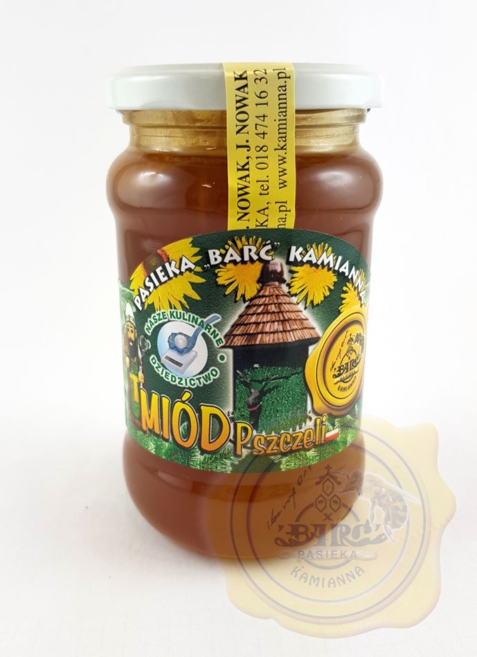Szczelnie zamykać. Przechowywać w temp. od +4oC do 28oC w zacienionym miejscu. Miód ulega naturalnej krystalizacji. Kraj pochodzenia : POLSKA