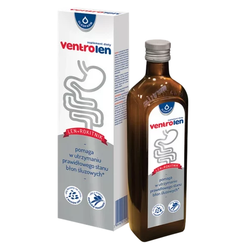 Ventrolen to połączenie oleju lnianego z olejem z owoców rokitnika, witaminą A i witaminą E. Charakteryzuje się wysoką zawartością tłuszczów nienasyconych. Zastępowanie w diecie tłuszczów nasyconych tłuszczami nienasyconymi pomaga w utrzymaniu prawidłowego poziomu cholesterolu we krwi (jedno- i wielonienasycone kwasy tłuszczowe są tłuszczami nienasyconymi).