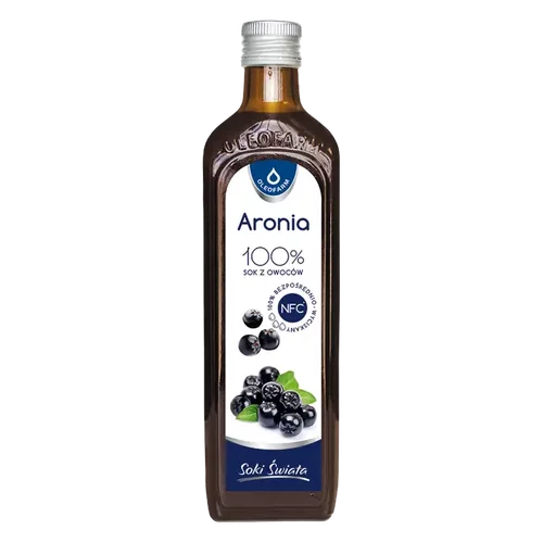 Aronia (Aronia melanocarpa) jest krzewem należącym do rodziny różowatych, uprawianym dla aromatycznych, ciemnogranatowych owoców. Sok wyciskany bezpośrednio z owoców aronii charakteryzuje się kwaśnym, lekko cierpkim smakiem. Stanowi doskonałe uzupełnienie codziennej, zbilansowanej diety. Może być spożywany przez osoby w każdym wieku. Polecany jest szczególnie w okresie jesienno-zimowym i w okresie przesilenia wiosennego.
