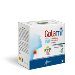 Golamir 2Act łagodzi ból i podrażnienie, chroniąc błonę śluzową jamy ustanej i gardła.
