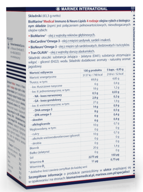 BioMarine®Medical Immuno & Neuro Lipids 4 rodzaje olejów rybich o biologicznym składzie (żspm):
