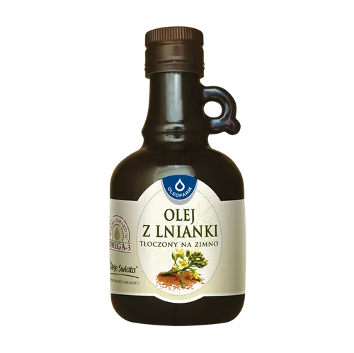 Olej z nasion lnicznika siewnego – lnianki, tłoczony na zimno.