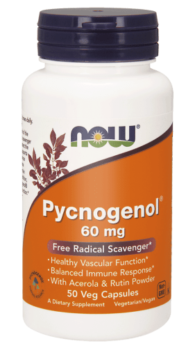 Pycnogenol® 60 mg marki NOW® został wzbogacony o owoc Aeroli oraz rutynę – unikalna kombinacja proantocyjanidyn uzyskanych z kory francuskiej sosny morskiej. Jako silny naturalny zmiatacz wolnych rodników Pycnogenol® pomaga chronić tkanki organizmu przed stresem oksydacyjnym i wspiera zdrową, zrównoważoną odpowiedź układu odpornościowego.